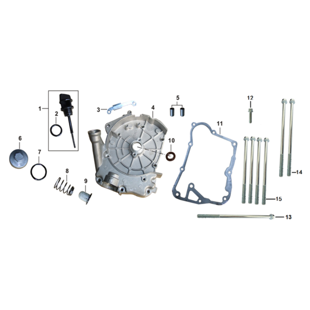 Десниот поклопец и филтерот за масло го штитат моторот и овозможуваат правилно филтрирање на маслото, со што се обезбедува долготрајна и сигурна работа на агрегатот. Во понудата се десен поклопец на картера, филтер за масло, чепови, O-ring гумички, пружини, сита и придружни завртки и игли за центрирање, кои заедно обезбедуваат ефикасно подмачкување и заптивање на моторот.