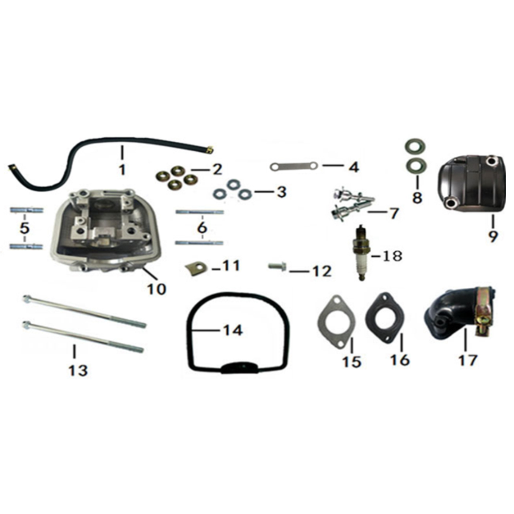 Главата на моторот и поклопецот ги опфаќаат компонентите на горниот дел од моторот задолжени за согорување, проток на мешавината и правилно подмачкување. Во оваа категорија се вклучени глава на моторот, поклопец на главата, диhtunzi, завртки, подлошки, усисна гранка, свеќица и придружни елементи, кои обезбедуваат заптивање, стабилна работа и оптимални перформанси на моторот.