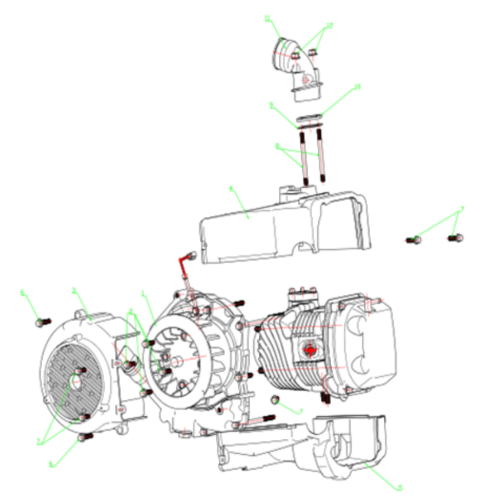 Овој сет ги опфаќа клучните компоненти на системот за ладење и усис на воздух – од импелер на вентилаторот и поклопци, до усисната цев и термален штит. Дизајнирани се за оптимален проток на воздух, ефикасно ладење на моторот и долготрајна работа на вашето ATV возило, обезбедувајќи сигурност и доверливост во сите услови на возење.