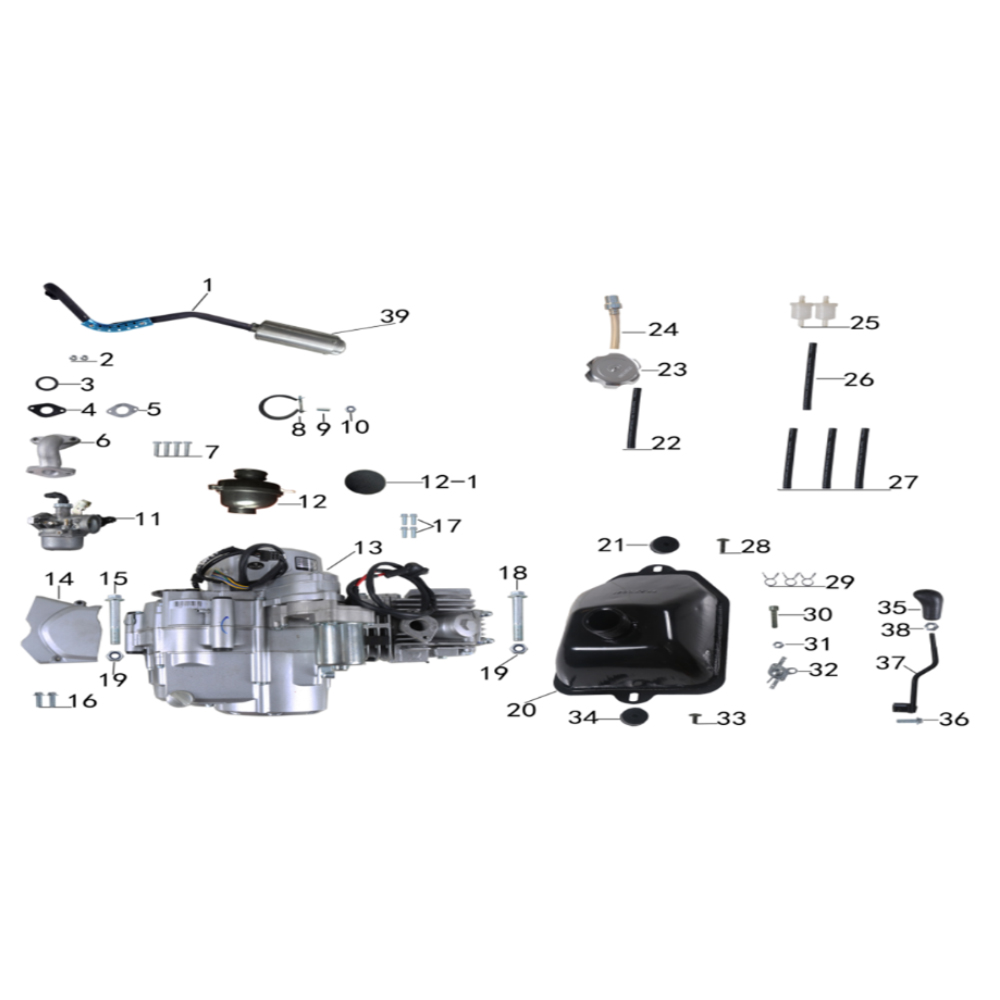 Системот на моторот ги опфаќа сите клучни компоненти задолжени за работа на моторот, издувниот и усисниот систем, како и за горивото и подмачкувањето. Во понудата се мотор со автоматски менувач и рикверц, карбуратор со електричен чок, филтер за воздух, усисна гранка, издувна цевка, капаци на ланец, завртки, навртки, подлошки, сигурносни навртки, црева за гориво, резервоар за гориво со капак, вентил за гориво, филтер за гориво, рачка и шипка на менувачот, гумени амортизери, стегачи, филтер елементи и придружни елементи, кои заедно обезбедуваат сигурна работа, оптимални перформанси и долг работен век на моторот на ATV возилото.