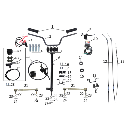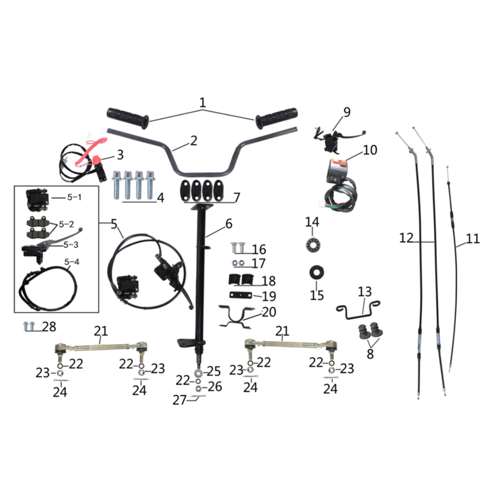 Системот за управување ги опфаќа сите компоненти потребни за прецизна контрола и сигурно управување на ATV возилото. Во понудата се волан, сет на рачки, тројни носачи на управувачот (Triple Tree), стеги и носачи на столбот на управувачот, гумени блокови и подлошки, спојница на воланот, команди за сопирачка и гас, сајли, рачки, прекинувачи, лежишта, семеринзи, завртки, навртки, подлошки и придружни елементи, кои заедно обезбедуваат сигурно управување, стабилност и безбедност за време на возењето.