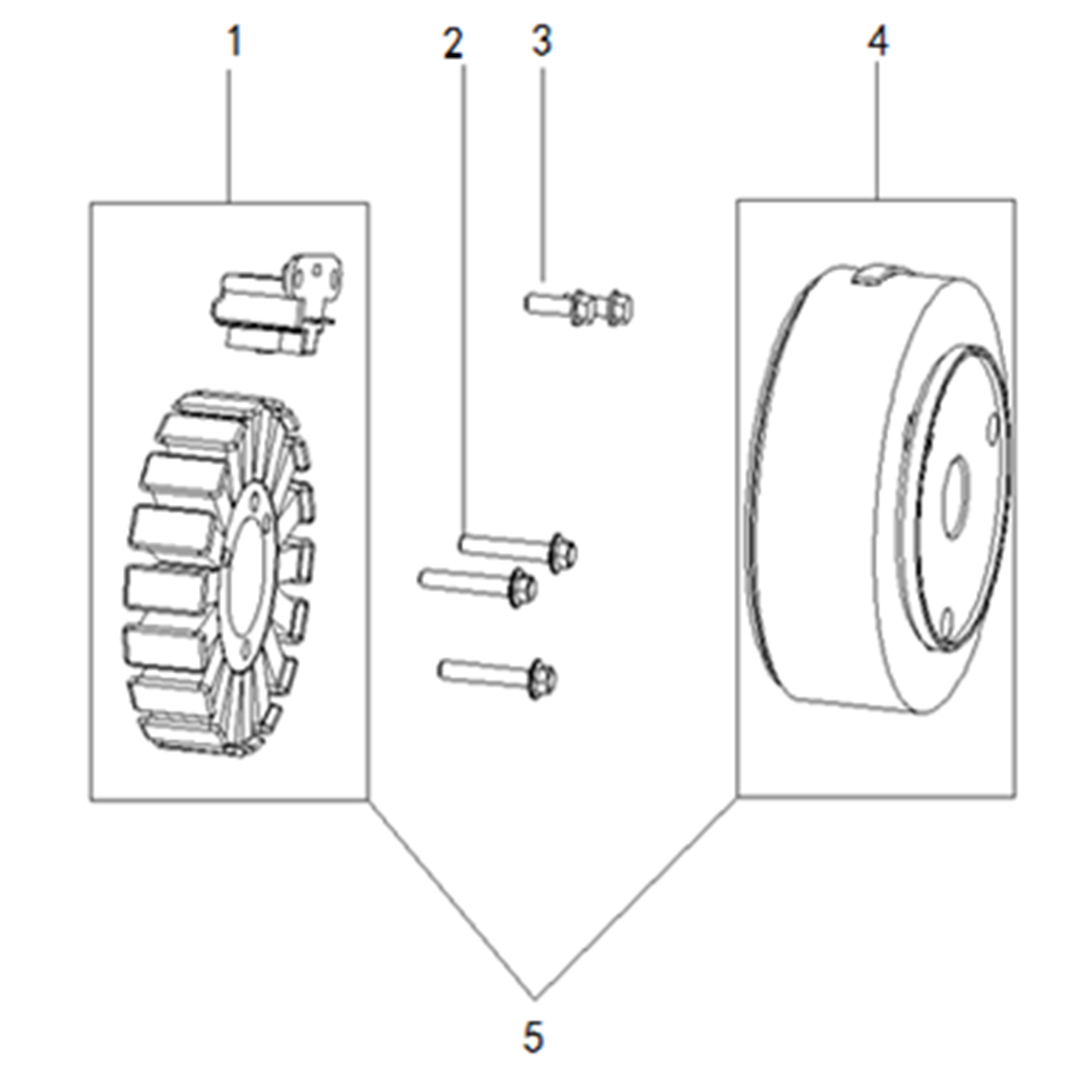 Склопот на магнетот вклучува ротор со вградените магнети, шестострани завртки со раб и комплетен склоп на генераторот. Сите елементи обезбедуваат правилно функционирање на електромагнетниот систем на моторот и сигурно производство на струја за вашиот T LANDER 300.