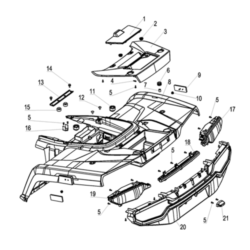 Задниот пластичен дел на каросеријата за T LANDER 300 ги вклучува сите компоненти потребни за заштита и функционалност на задниот дел од возилото. Во комплетот се вклучени капаци, рефлектори, светла, браници, како и сите потребни прицврстувачи. Овој сет овозможува сигурен монтаж на дополнителна опрема и оптимална заштита на задниот дел од ATV возилото, целосно компатибилен со моделот T LANDER 300.